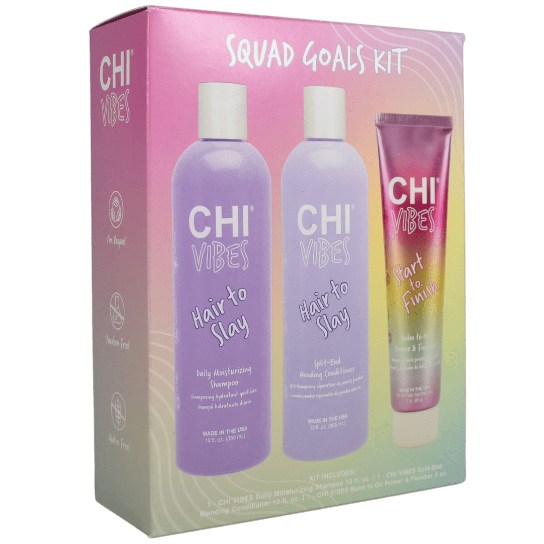 The bottles and tube act as primary packaging holding the hair products, securely housed within a folding carton serving as the secondary packaging for kitting and retail display.