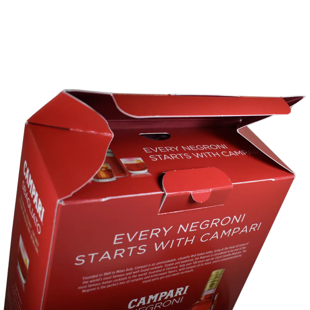 By showcasing the bottles and accessories through a cohesive design, we enhanced Campari’s and Aperol’s retail presence and created memorable unboxing experiences for their customers. The thoughtful construction and high-quality printing and finishes ensured the packaging not only stood out on shelves but also reflected the elegance of each brand.