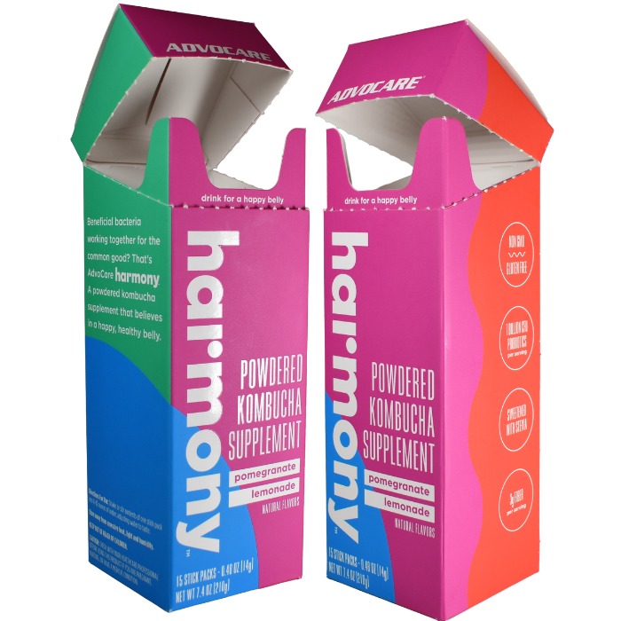 AdvoCare, a premium dietary supplement brand, partnered with Wynalda to create retail packaging for their new powdered kombucha supplement, Harmony®.