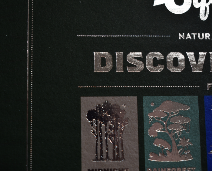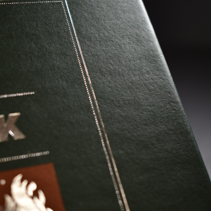 Throughout the project, we closely monitored the depth and consistency of the embossed texture to ensure it met both visual and tactile expectations. In addition, the customer required fine type foil stamping over the textured surface. This presented a unique challenge, as we needed to ensure proper foil adhesion on the embossed sheet while still maintaining crisp detail and the level of brilliance the customer expected.