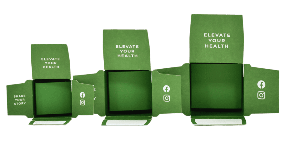 One of the defining features of these boxes is the bright inside print. The inside of each box is printed with a solid layer of that product’s corresponding color, adding vibrancy to the packaging. This design choice enhances the unboxing experience, elevates the perceived quality of the product, and reinforces NuLeaf’s branding.