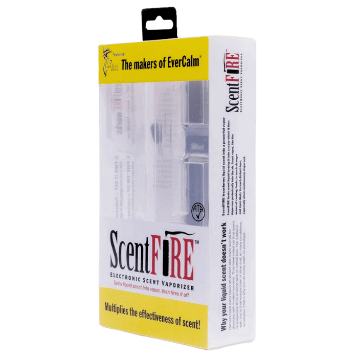 Fourth Arrow Brands, the creator of Wyndscent technology, partnered with Conquest Scents to launch ScentFIRE—a first-of-its-kind product that converts hunting scents into timed vapor releases. The packaging needed to showcase the innovative power unit while maintaining ample print space for features and benefits.