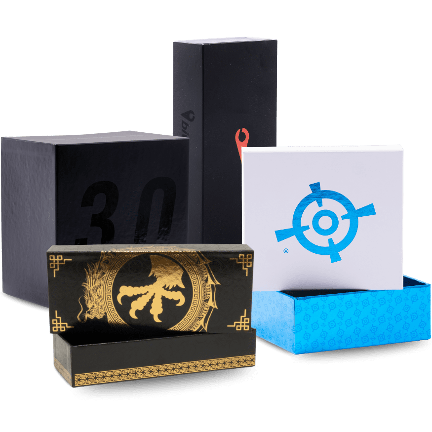 Rigid set-up boxes are made of recycled chipboard with a fine sheet paper wrap, providing a recyclable, and often biodegradable, paper-based solution for luxury packaging.